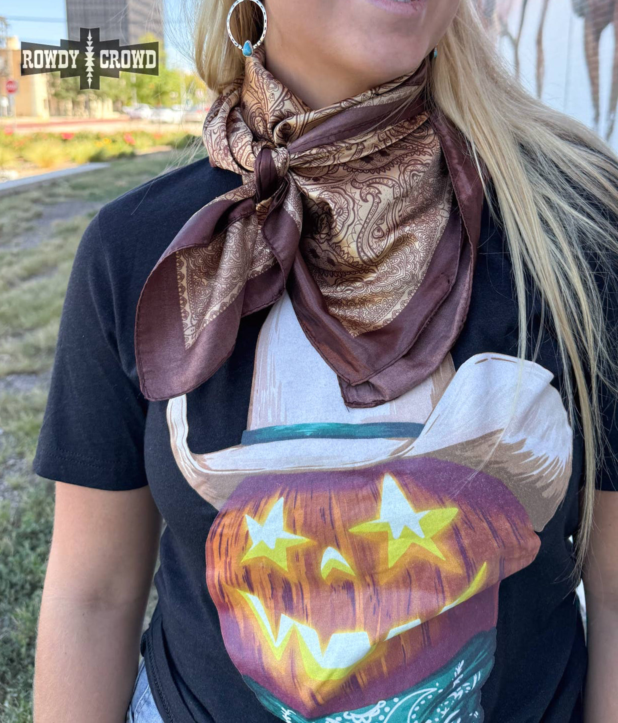 Earthy, rich, and full of Western soul- our Blazing Saddles Wild Rag brings the heat! With it's warm gold and brown tones and silky feel, it's the perfect blend of rugged charm and cowpoke class.