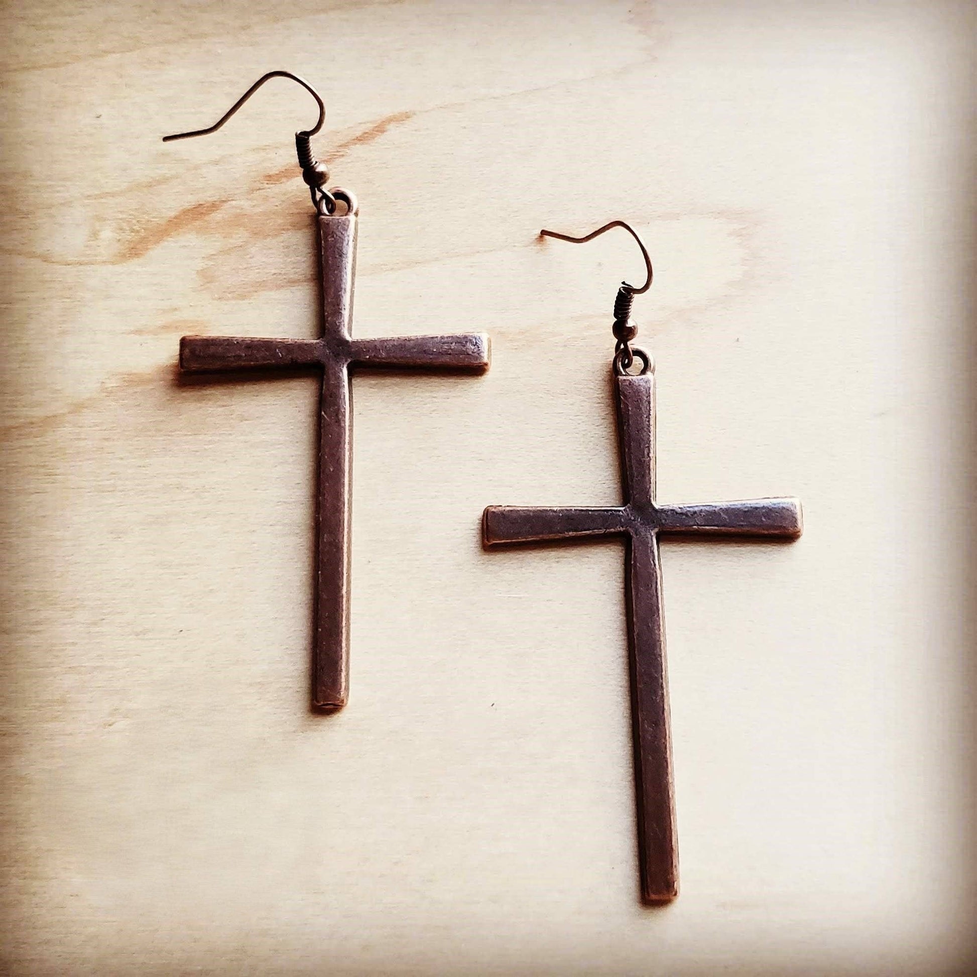 Add a touch of boho style to your outfit with these beautifully crafted Copper Cross Earrings! Handmade with care, they provide a unique and eye-catching accessory that will elevate your look. Perfect for those who love to stand out and make a statement!