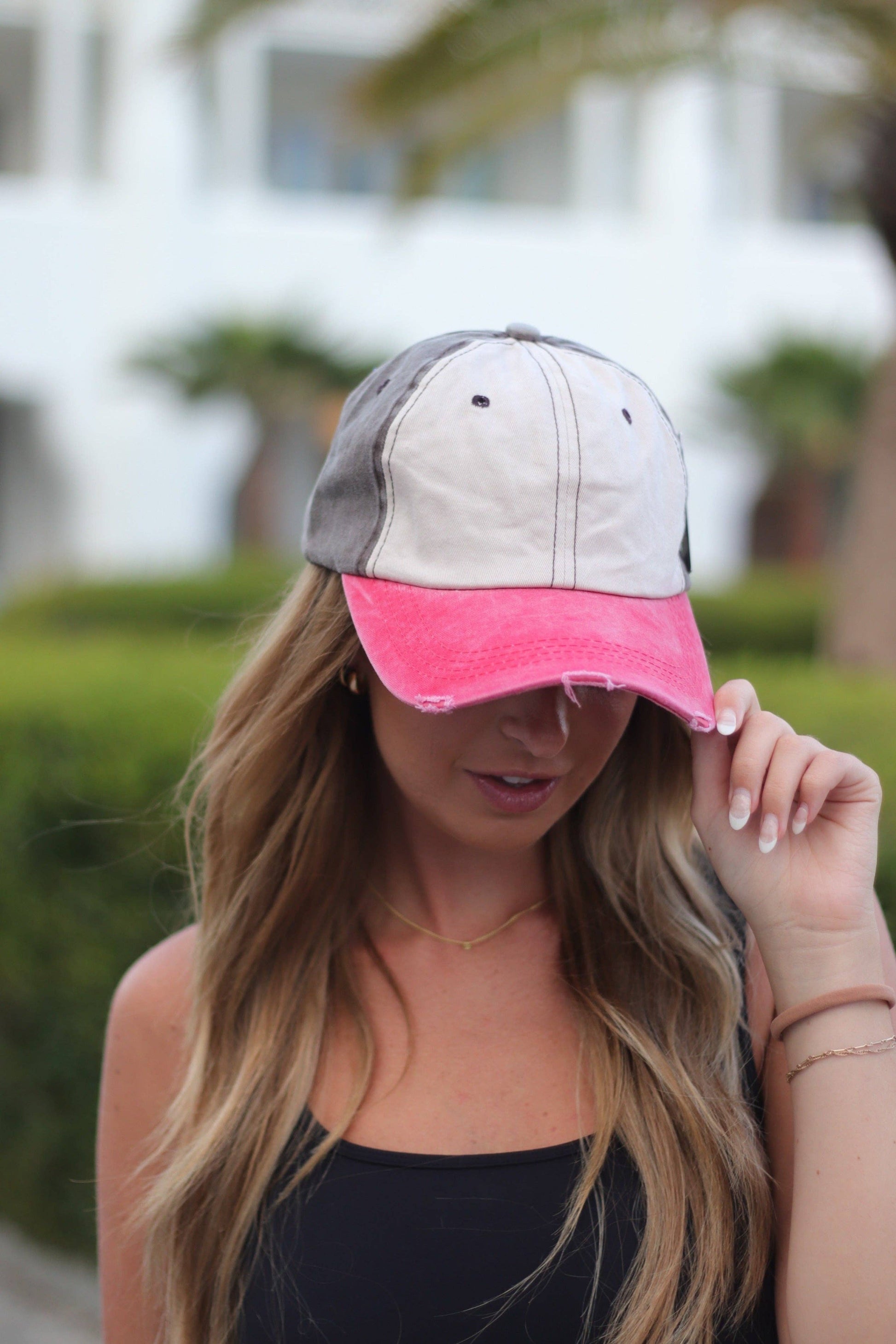 Elevate your casual style with this distressed cap in tan, brown, and coral tones. The vintage-inspired design and earthy color palette make it a versatile accessory for any wardrobe. Perfect for daily wear or as a blank canvas for custom designs.