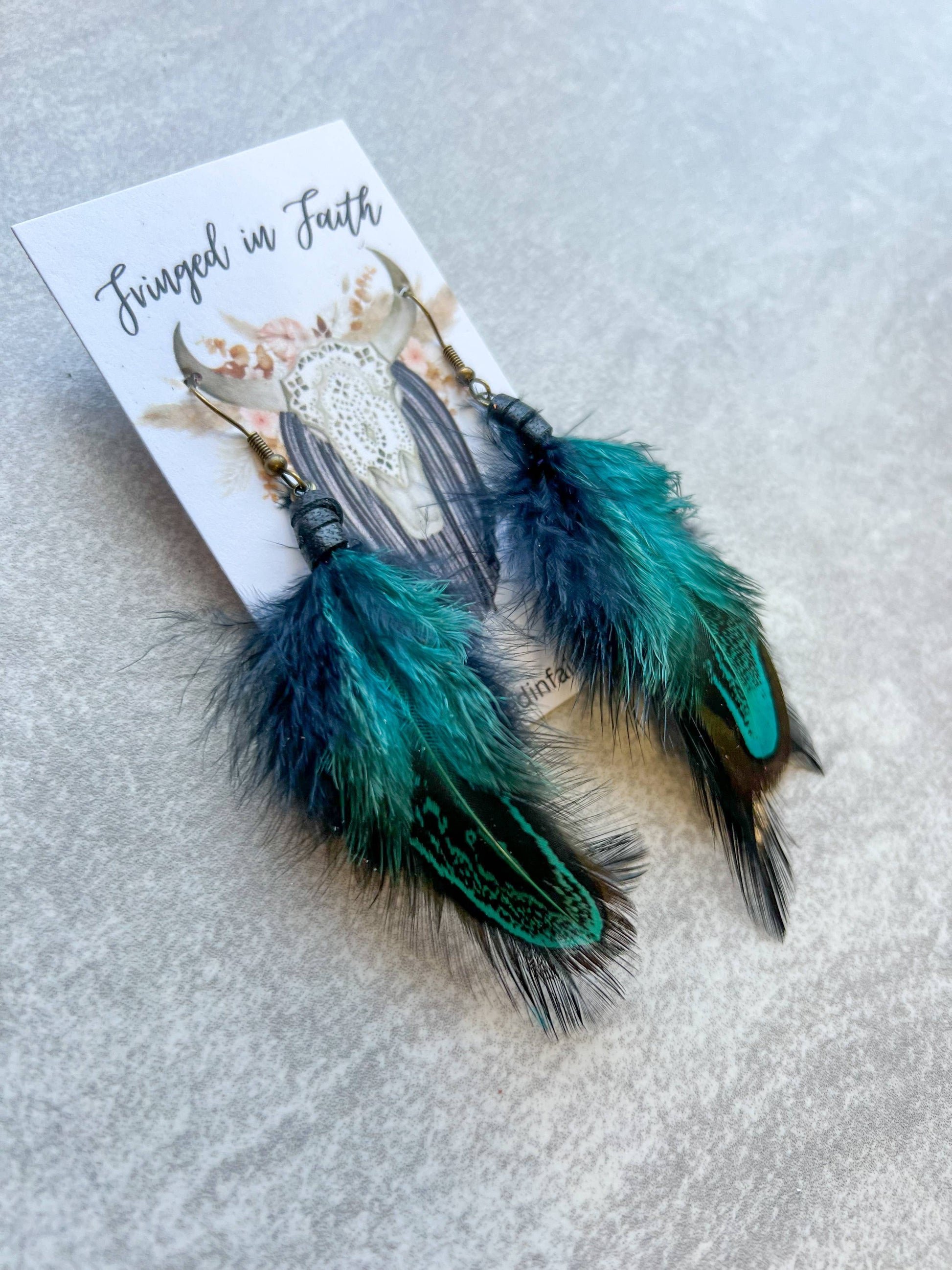 Beautiful mini feather bundle with teal and black feathers, these are perfect pop of color and extremely light weight.