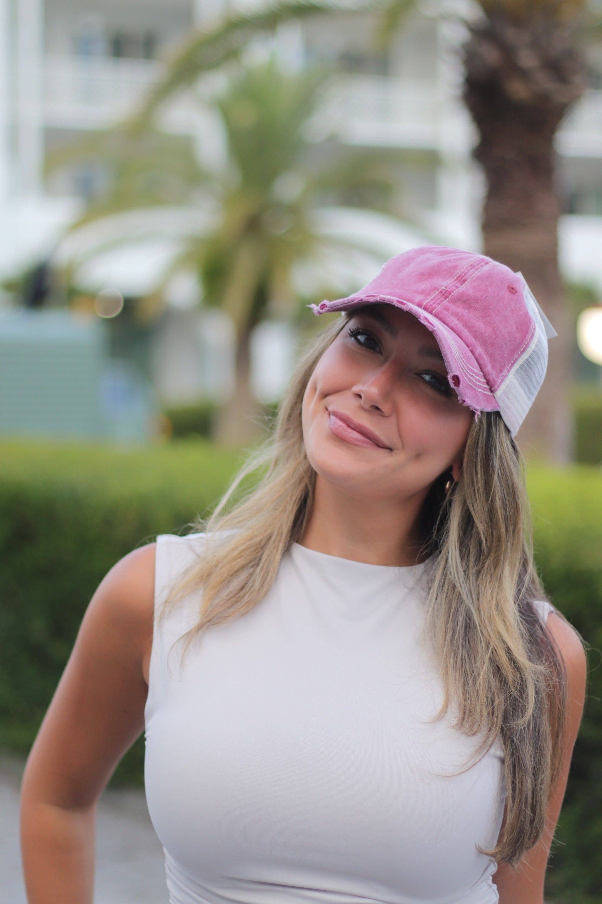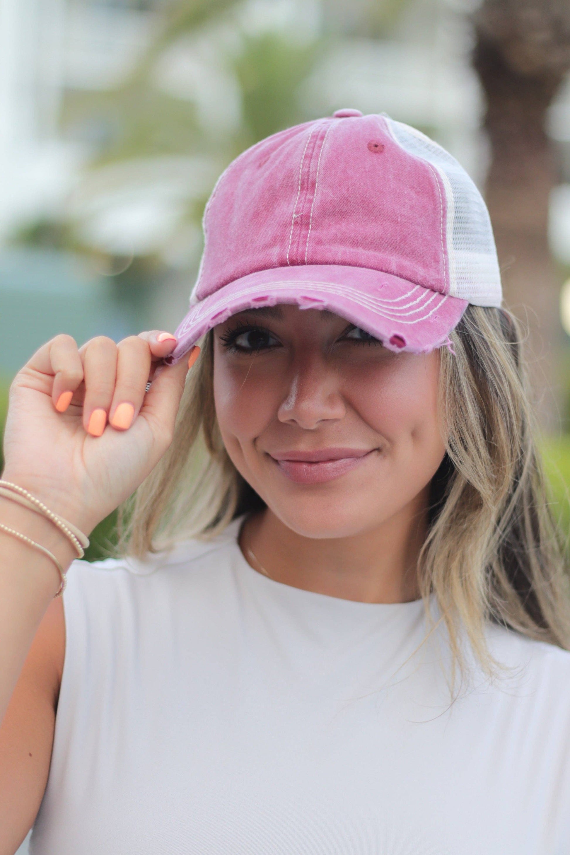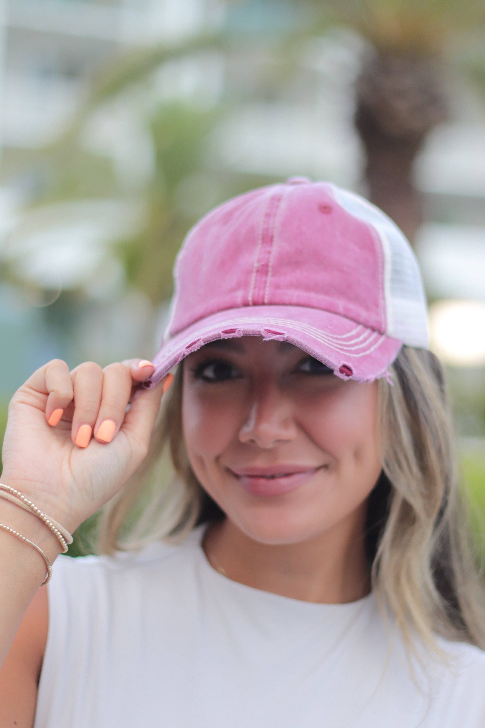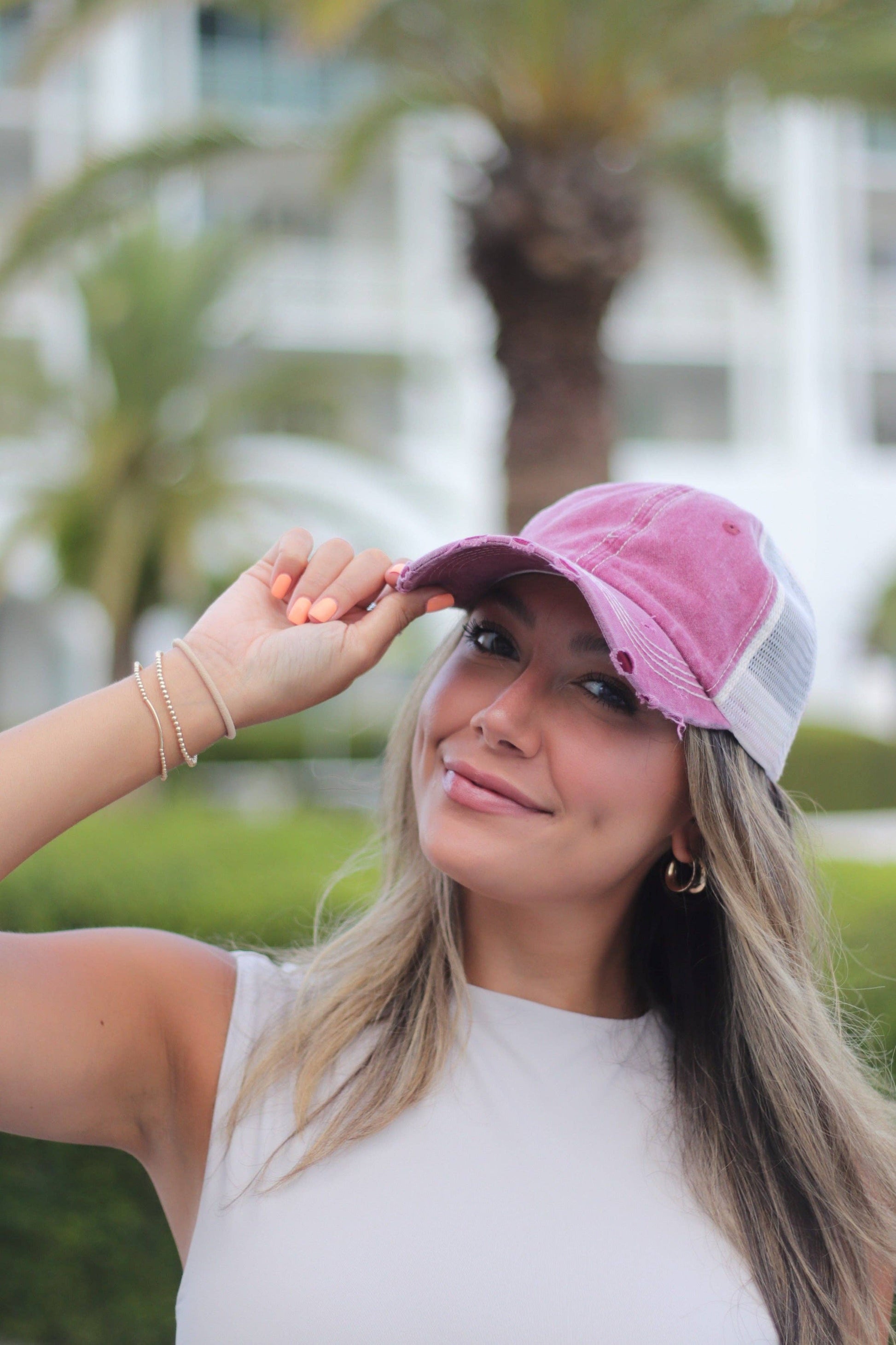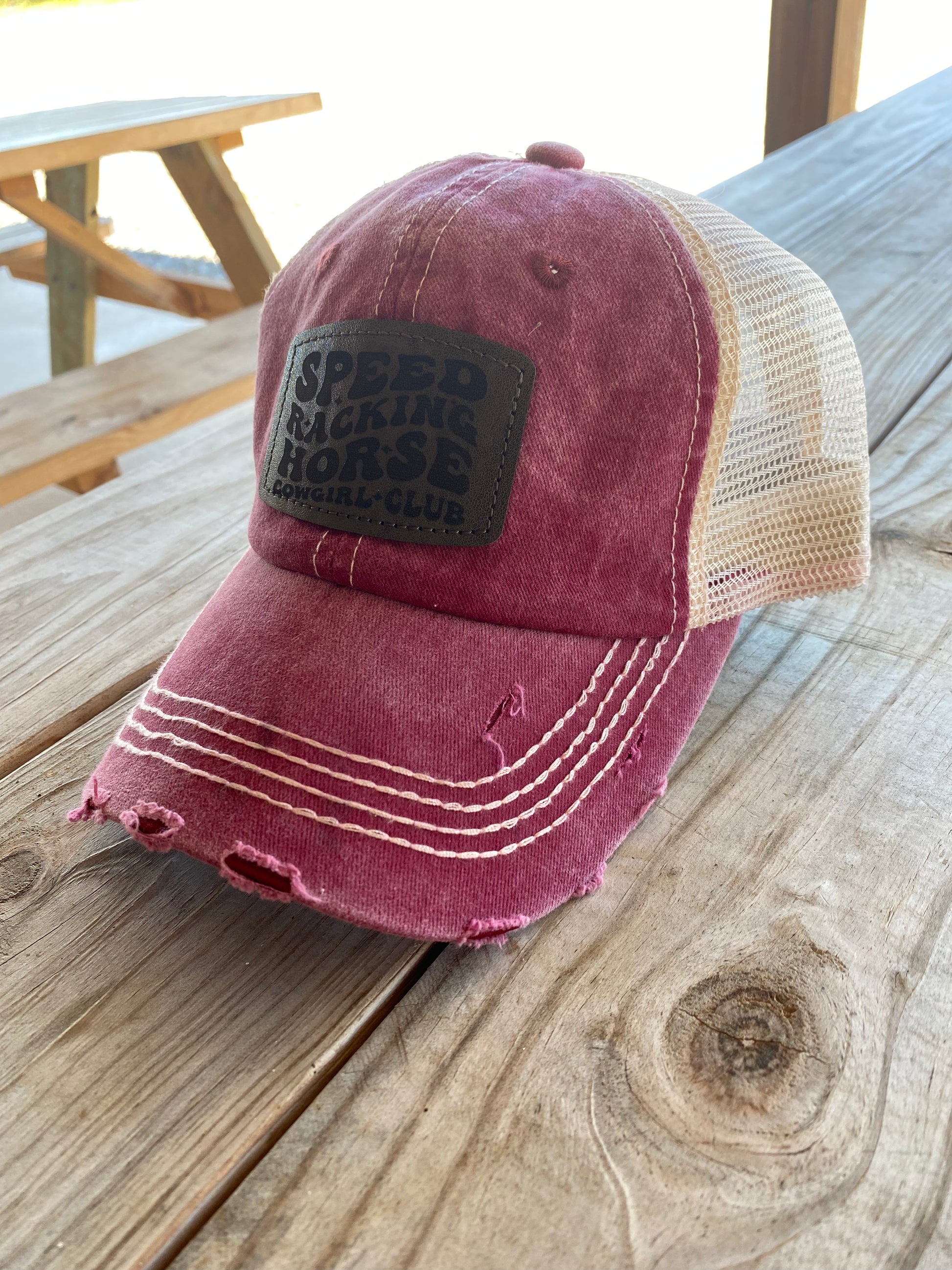 SPEED RACKING Vintage Maroon Distressed Hat with Beige Mesh